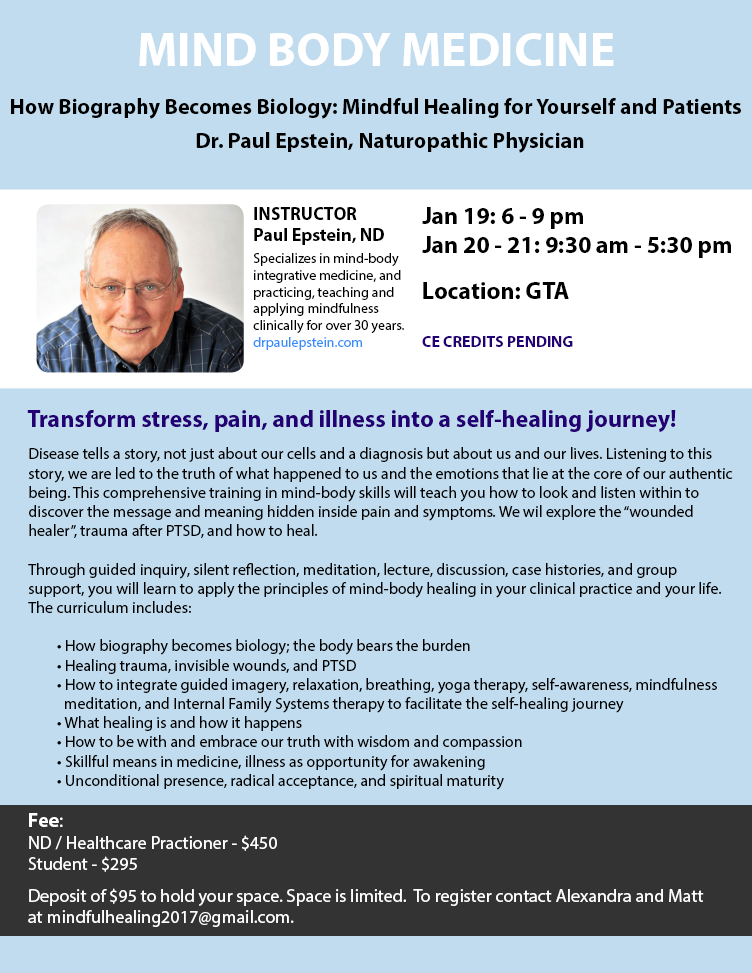 Naturopathic doctor Paul Epstein explores biology and biography and teaches you to integrate mind-body therapies into clinical practice.
